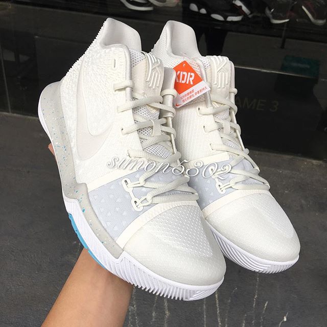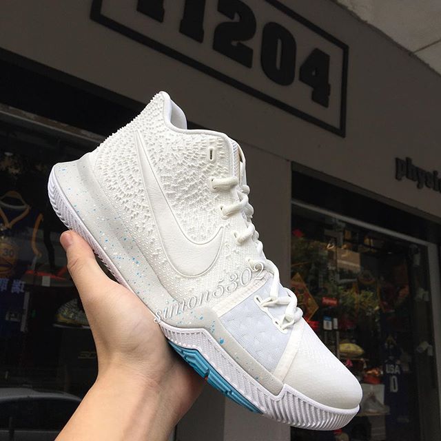 既 Kyrie 3 “Time to Shine” 发售之后,有一款全新白色的 Kyrie 3 实物图片现已曝光。 这双 Kyrie 3 以奶白色为主,并搭配纯白色外底与细节,浅灰色的中底则带有淡蓝色泼墨设计,鞋身整体给人一种干净舒适的感觉。 这双带有清爽气息的 Kyrie 3 目前尚未公布发售日期,感兴趣的朋友请关注我们带来的后续报道。