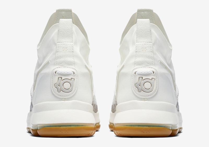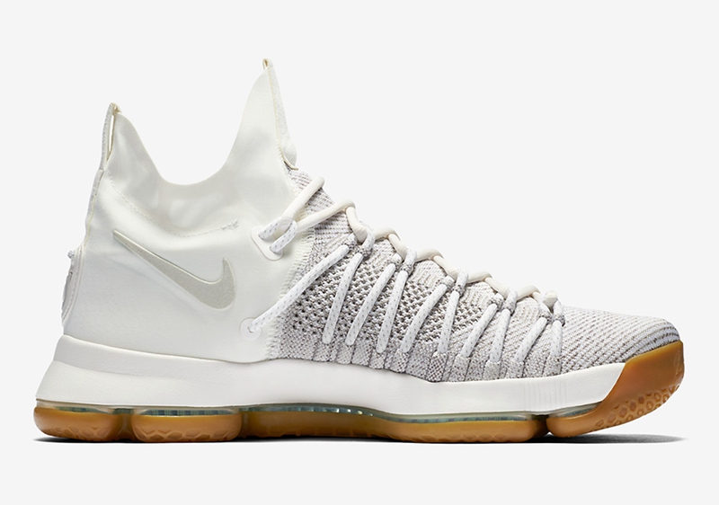 这款全新配色的 Nike KD 9 Elite 具有十分吸引人的外观,以纯白色和浅灰色的 Flyknit 呈现整体视觉效果,弹性的脚踝包裹,更加方便运动实战,最后搭载了橡胶外底和淡蓝色的 Zoom Air 气垫,简洁清新的外观吸睛度满分。