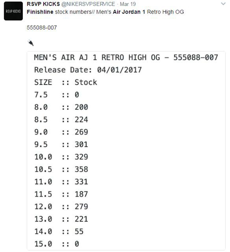 近日另一家海外知名连锁店铺 Finishline 的库存清单流出,网站预计将有 2700 双投入市售!对于小脚的男生来说,并未有 40.5 尺码发售,直接从 41 码开售,着实让人心塞。