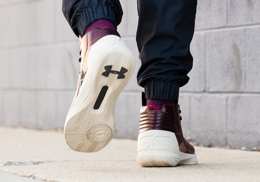 UA Curry 3 Lux “Oxblood Leather” 整体外观与 Curry 3 基本一致,但是整体是质感却更偏于休闲化,牛皮外衣的包裹下,营造出极度简约的奢华感。鞋面的大面积冲孔,也将为球鞋带来良好的透气感受。内侧碳板上的金色库里签名表明了球鞋身份,奶白色大底与鞋面形成反差。 目前这款 UA Curry 3 Lux 以在国外官网上架,发售价格为 $150 美元,国内尚未公布发售日期,喜欢低调奢华风的朋友尽请关注!