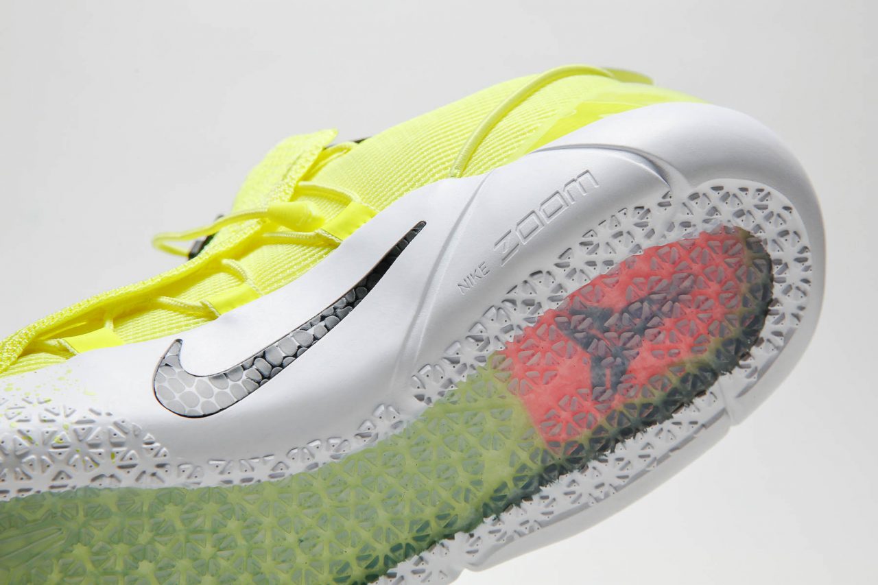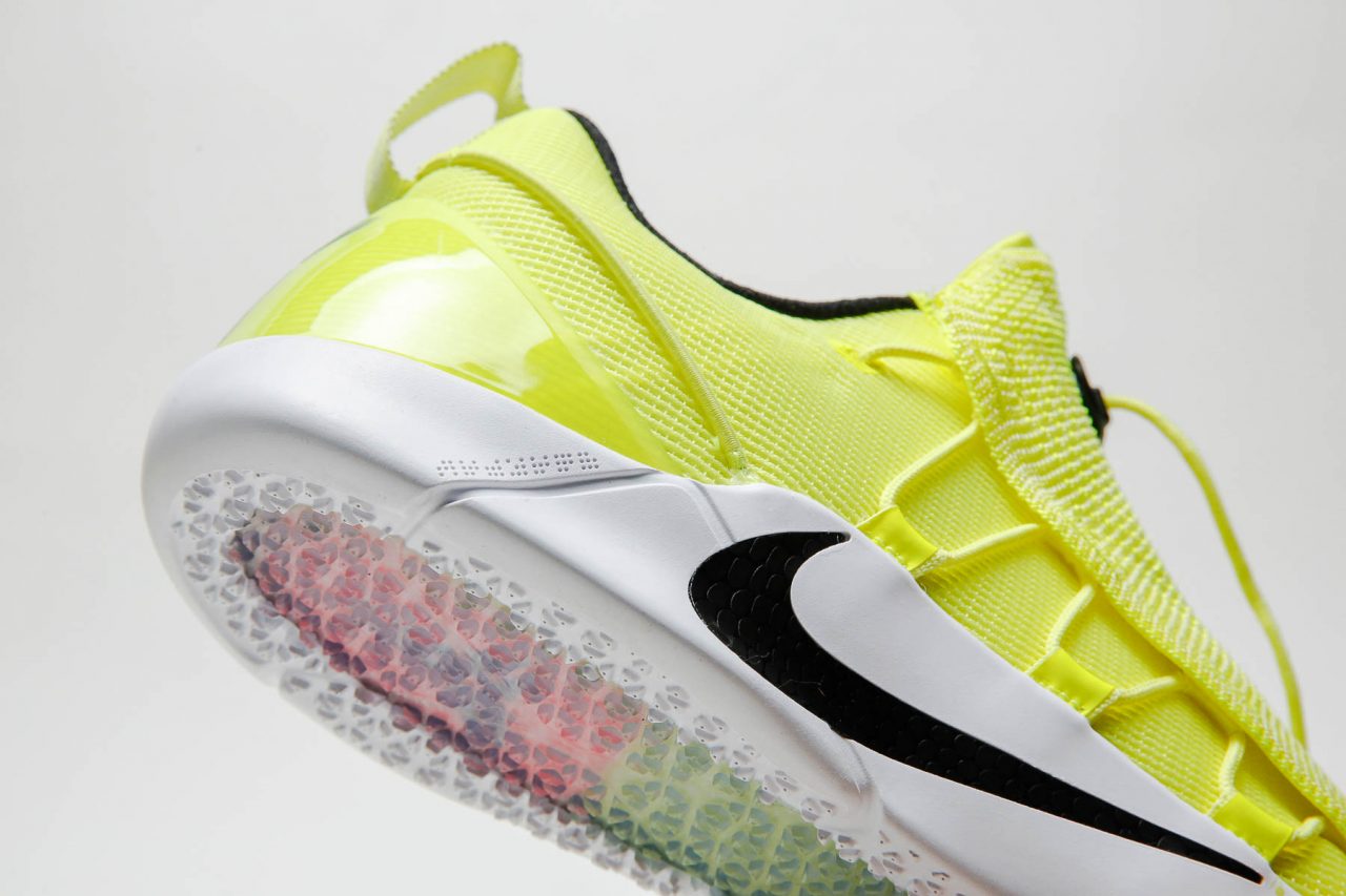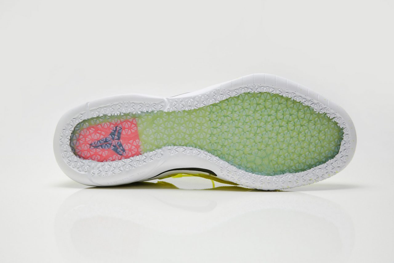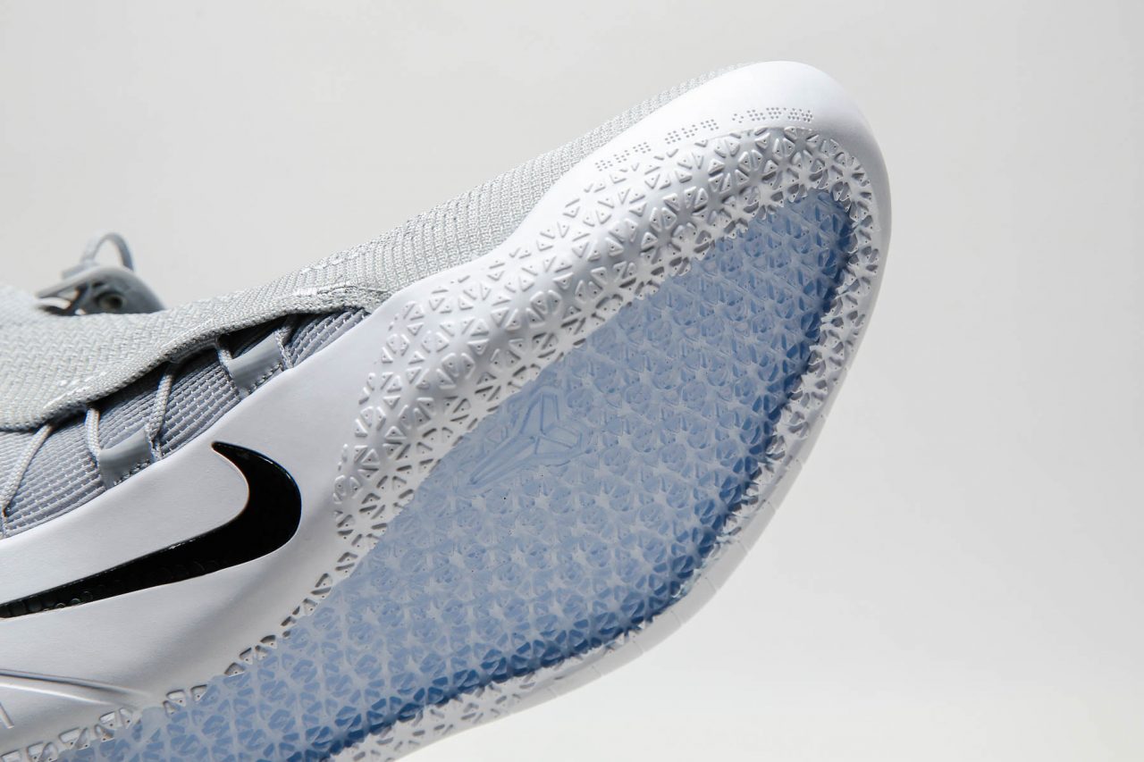 在其鞋身上看不到任何 Kobe A.D. 的影子,采用 Mesh 面料打造了一个面罩设计,鞋带系统则从鞋舌环绕包裹了鞋面一直延续到后跟。后跟的 Kobe Logo 和四条伤疤标志表明了科比战靴的身份,从鞋底的 Zoom 字样可以看出依然是搭载了 Zoom Air 方案。
