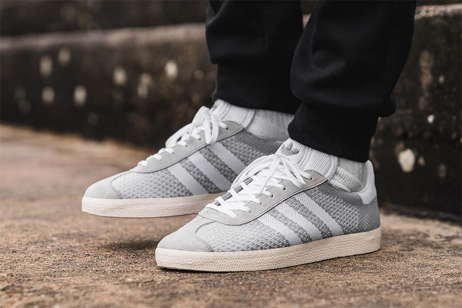 在今年春季 adidas 则带来了 Primeknit 编织鞋面的升级,这一 adidas Gazelle Primeknit 以全新科技打造鞋身,在收获轻便透气穿着舒适感的同时,也展现了更为精致细腻的编织纹理。