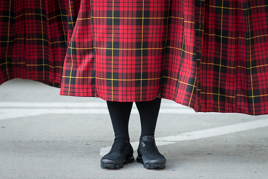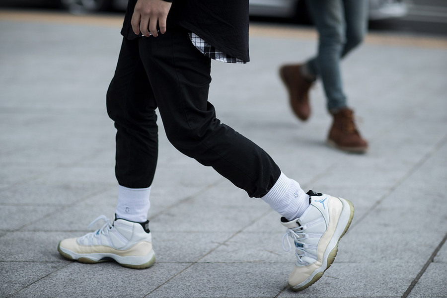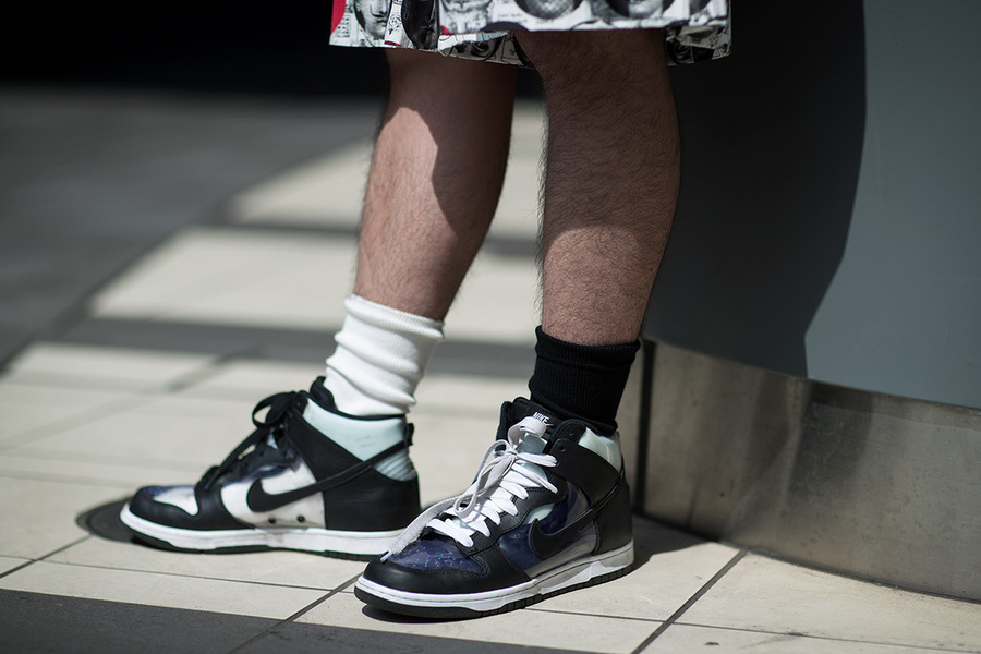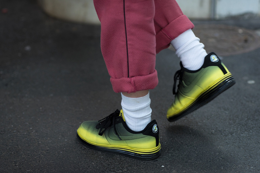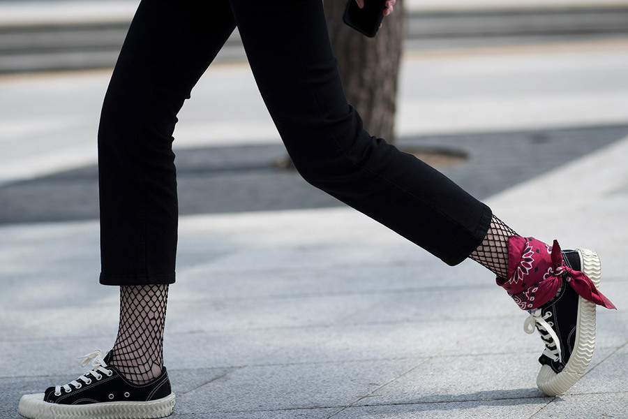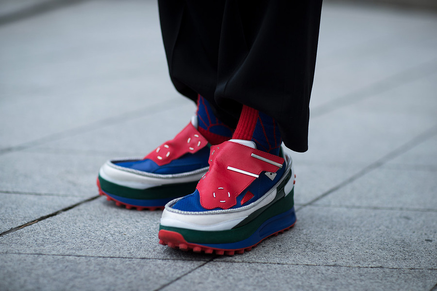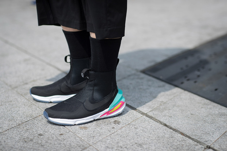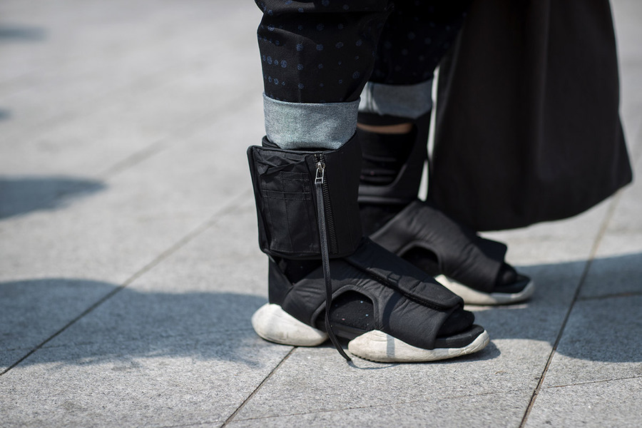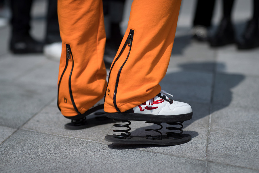 某国的 2017 秋冬女装时装周的秀场外,在各色各样的球鞋上脚中,我们发现了一款 “惊艳辣眼” 的弹簧鞋! 采用了同沙发、床垫里一样的弹簧装置,不知道实际的上脚感受如何,这一份澎湃的力量反馈,估计真的是可以 “上天”! 我们来看看其他的球鞋上脚,你猜猜是哪个国家的时装周? 这个是来自韩国首尔 FW17 女装时装周的现场图片,下面我们再来看看日本东京 FW17 女装时装周的球鞋上脚,看看画风是否有所不同! 其中还真有不少 “魔性” 上脚!你给哪张打分最高呢??