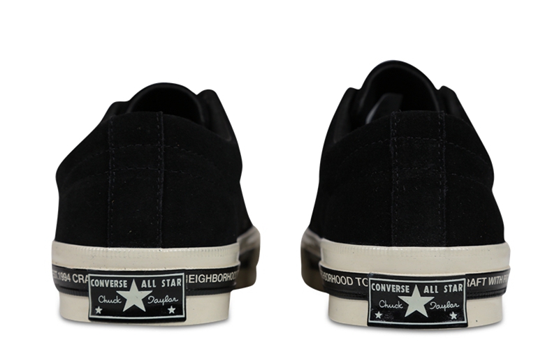另外一款 One Star’74 则采用黑色麂皮制作鞋面,侧面通过白色车线勾勒出标志性的星星与圆圈图案,中底处缀有 “CRAFT WITH PRIDE NEIGHBORHOOD TOKYO EST 1994” 字样,搭配后跟招牌三星标识,辨识度极高!