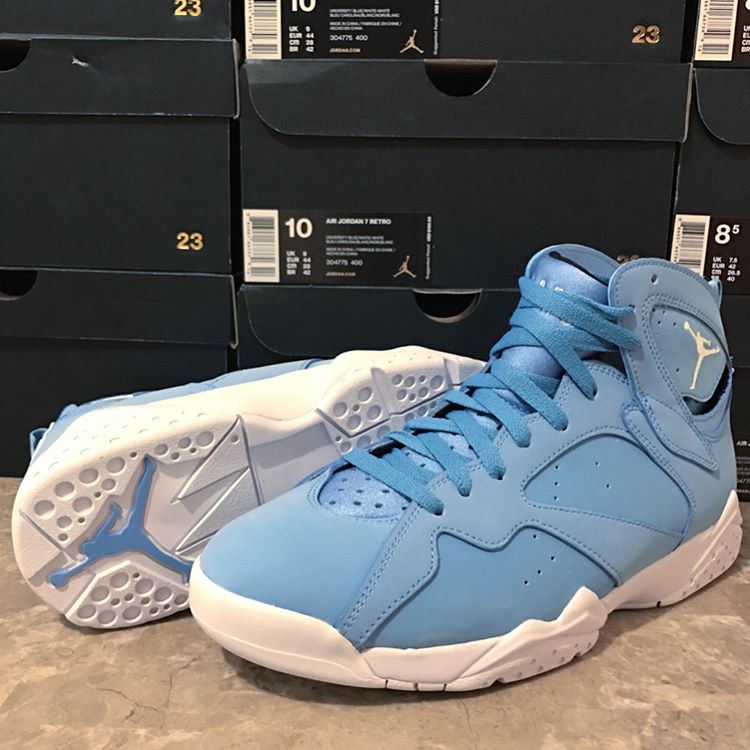 另外一款 Air Jordan 7 “Pantone” 则将非市售版本带到我们的身边,纯正的北卡蓝色调贯穿,以白色 Jumpman Logo 和鞋底托衬,上脚穿搭必将成为街头的活力亮点!