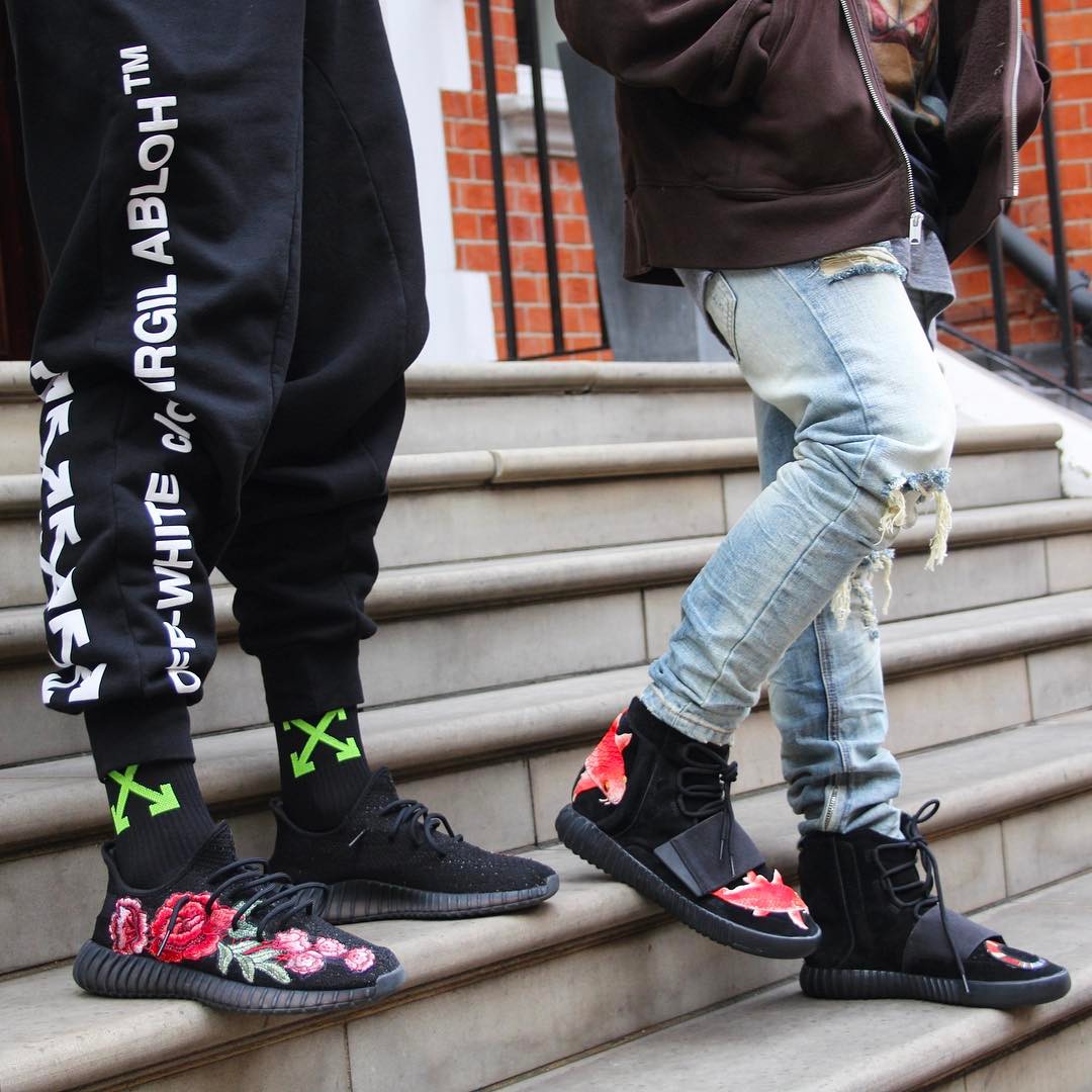 其中不仅有超高人气的 Yeezy 350 和 Yeezy 750,还有经典的 Air Force 1。刺绣大部分以花为主题,当然也有中国元素的龙的刺绣。