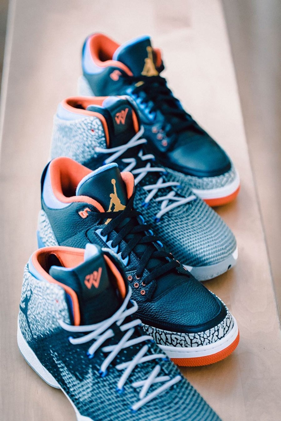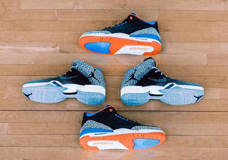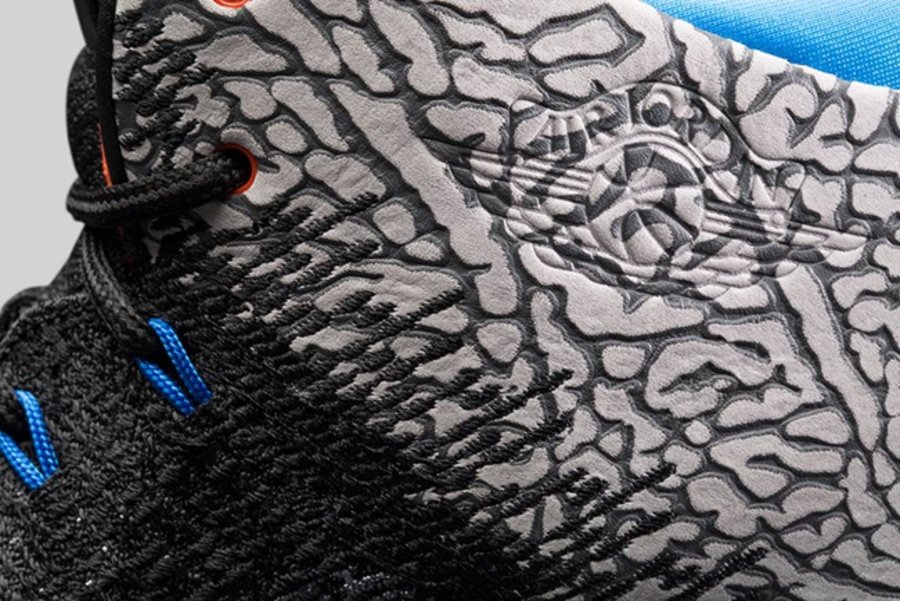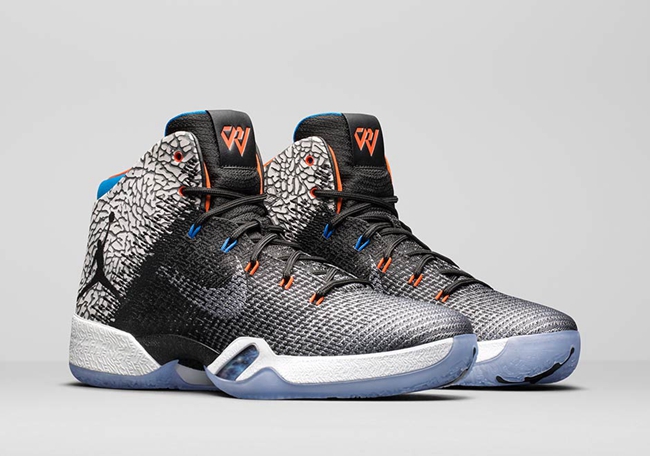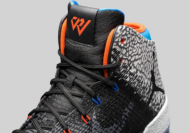 现在,这双威少的 “升级款” Air Jordan 31,终于破天荒的迎来市售,从此前雷霆 Air Jordan 3 PE 可看出,黑水泥爆裂纹始终是威少的最爱,蓝橙的雷霆配色同样极具代表性,与威少上脚款的区别在于市售版本红蓝双色飞线及采用淡蓝色水晶外底示人,并在前掌中印有 “Why Not?” 字样,更彰显威少个人态度!