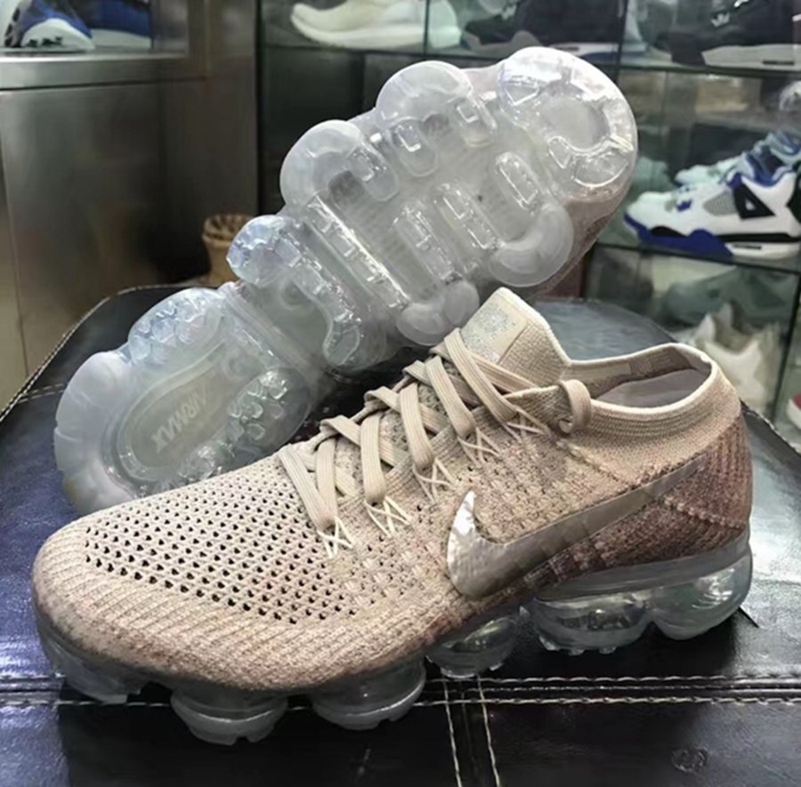 另外一双 VaporMax 则以浅卡其装扮制作鞋身,在后跟处搭配渐变棕褐色呈现。鞋侧 Swoosh 处以银灰色调示人,并搭载半透明气垫大底收尾。这一份锋芒内敛的沉着态度,相信在穿搭方面也一定有着不错的表现!