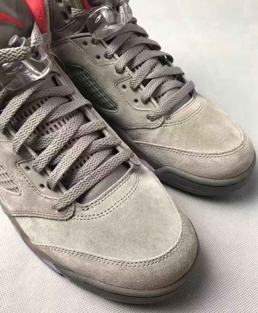 在 Supreme x Air Jordan 5 “Camo” 发售之后,又一款迷彩配色的 Air Jordan 现已曝光。 这双 Air Jordan 5 “Camo” 后跟与鞋舌采用迷彩配色,鞋身则采用麂皮材质。黑色的中底搭配淡蓝色水晶外底。 传言这款 Air Jordan 5 “Camo” 来自乔丹之子的鞋店 Trophy Room 与 BAPE 的联名款式,目前发售信息尚未公布。