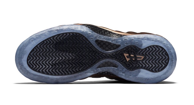 黄铜色发泡鞋面突显太空鞋硬朗的肌肉线条,充满了金属质感,将喷泡鞋身层次展现的淋漓尽致。淡蓝色水晶外底搭配黑色鞋领及大面积碳板,取得了视觉上的完美平衡。相比于之前发售的 “金喷”,这双 Nike Air Foamposite One “Copper” 颜色较深,但金属气息更加纯正,更具王者姿态。