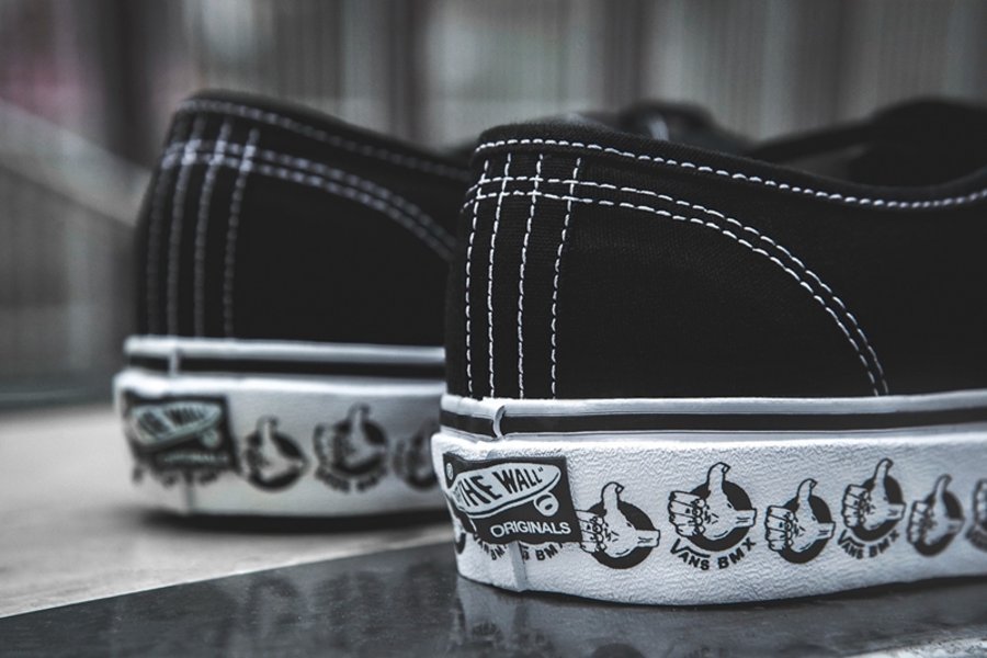 Vans Authentic 同样以黑白及白红双色为主题,共有两种材质四款配色。其中两款鞋面采用均帆布与皮面拼接而成,并在中底处印有竖拇指 “Thumbs up” 图案。另外两款则以帆布材质制作鞋面,在鞋头及中底处采用 Vans 经典棋盘格纹图案点缀,街头范十足!