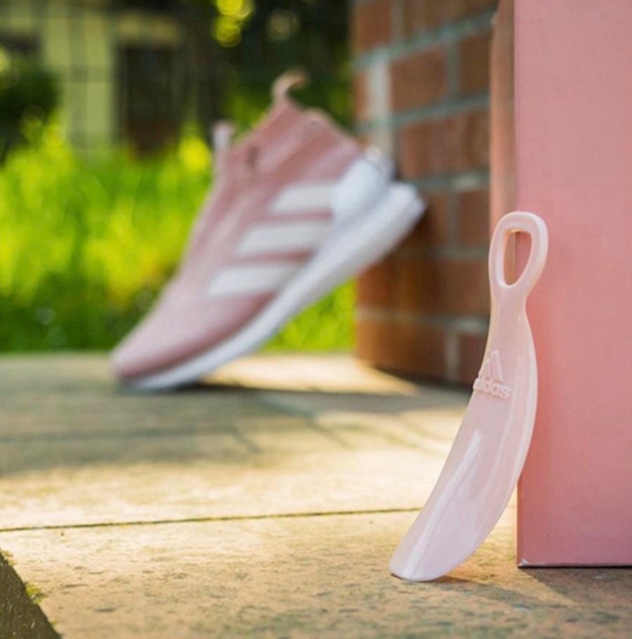 这双入手颇为不易的鞋款这次的配色十分清新怡人,以全粉色的 Primeknit 编织构造鞋面,去掉了往日的鞋身硬质框架,形成一个中帮高度的袜套设计,并搭配全掌 Boost 中底,带来了舒适的脚感以及极致的缓震效果。此番,这双全新联名的球鞋还配备了同色系的定制鞋盒,外加一个纯粉色的鞋拔。
