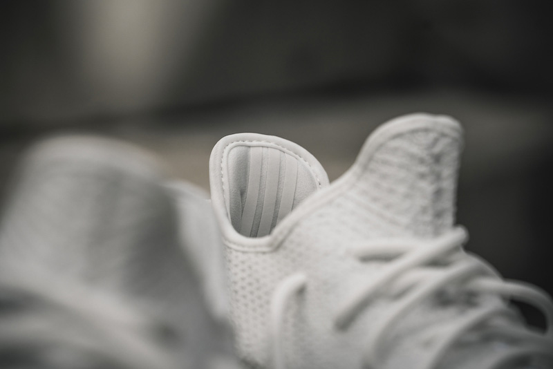 这款全新的 Yeezy 小白鞋,也是 adidas Yeezy 系列的首个 Triple White 纯白配色,想必人气必将高于黑色家族的成员。因为黑色配色的 Yeezy 350 Boost V2 整体货量并不小,加上春夏季也是白色球鞋风靡的大好时段,这双小白鞋的市场价格必定会高于红字配色,大家可以对于市场行情有个预判。