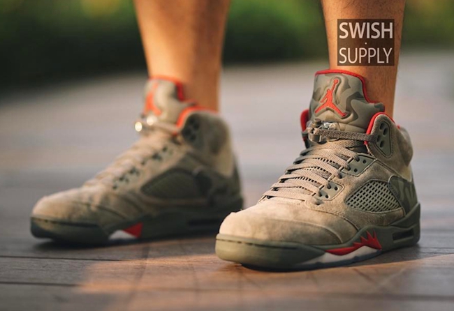 而对于 AJ5 这个战斗气息满载的鞋型,眼前这双 Air Jordan 5 “Camo” 恐怕是大家颇为期待的!