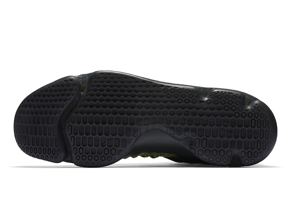 这双 Nike KD 9 Elite “Multicolor” 外观延续了之前的鞋底和鞋身的设计,并增强了包裹性。鞋头采用后多彩的 Flyknit 呈现绚丽的视觉效果,后跟、Swoosh 以及鞋底则采用低调的黑色。弹性的脚踝包裹,更加方便运动实战,最后搭载了橡胶外底和透明的 Zoom Air 气垫,炫彩与低调的结合体,外观吸睛度满分。