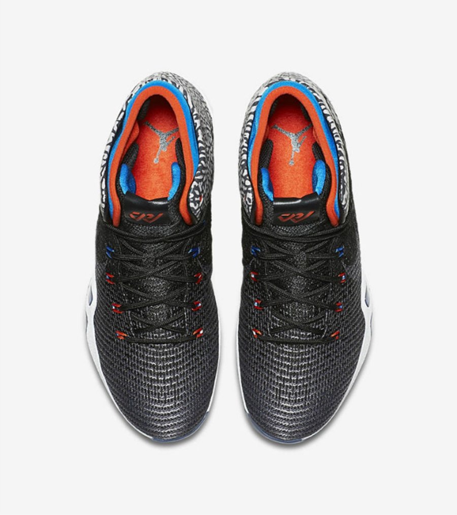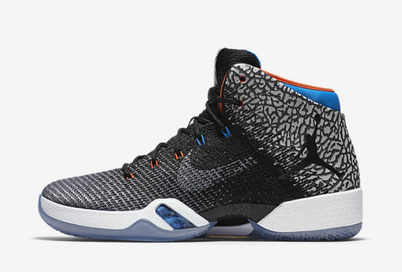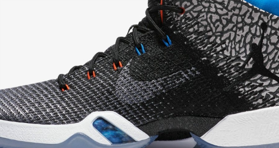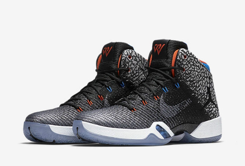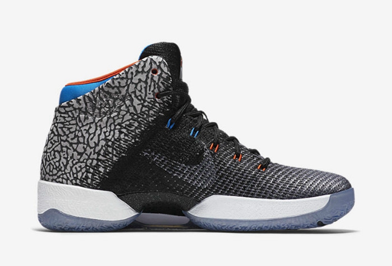 这双 “升级款” Air Jordan 31,命名为 Air Jordan XXX1 “Why Not?” PE。Air Jordan 31 鞋面以黑水泥爆裂纹为主,并采用蓝橙的雷霆配色细节。淡蓝色水晶外底与鞋垫处印有 “Why Not?” 字样。与 Air Jordan 30 相同,缓震技术则采用前掌 Zoom 与 FlightSpeed 中底的搭配。