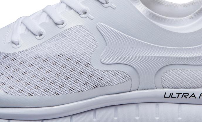 通过超轻弹性网布与无缝贴膜工艺的双重加持,不仅最大限度的减轻鞋身重量,更在核心部位予以加强,确保足够的支撑与包裹。最终使得男款单只仅为 185 克,女鞋更是达到了惊人的 152 克,相当于一件薄T恤的分量。