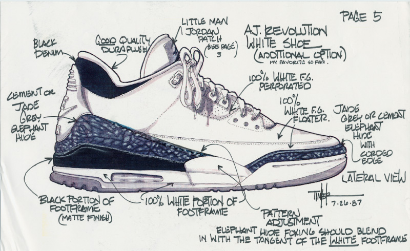 1981 年加入 Nike 公司,1985 年正式开始他的球鞋设计生涯。众所周知,诞生于 1988 年的 Air Jordan 3 就是他的杰作,这款经典篮球鞋不仅挽留住了 Michael Jordan,更是创造了爆裂纹、Jumpman Logo 等经典的人气元素,经久不衰!要知道那时候的 Tinker,才仅仅是一个初出茅庐的新手!