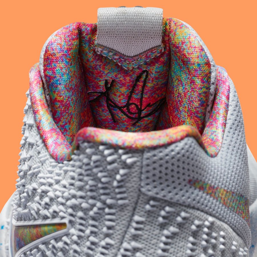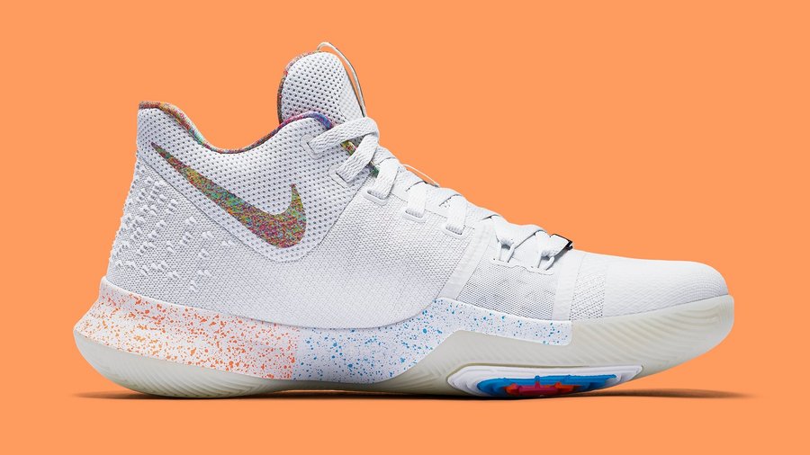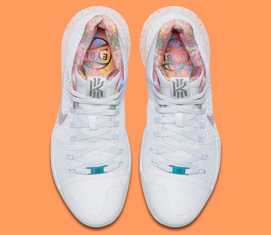 Kyrie 3 EYBL 以白色为主,多彩营造的 Nike Swoosh 及绚烂的鞋身内衬,使之格外引人注目!前后分段的泼墨中底也呈现出极富层次的细节表现!