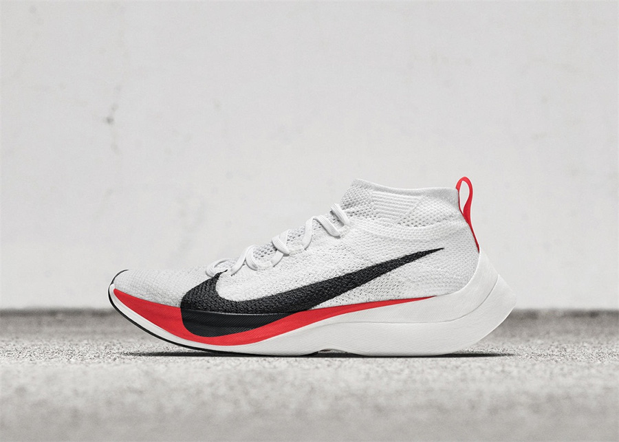鞋面则采用了贴合脚步的 Flyknit 材质打造,整个鞋型的造型都有尖端空气动力学的理论支持。