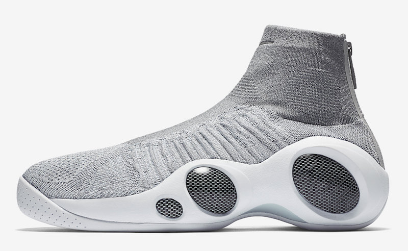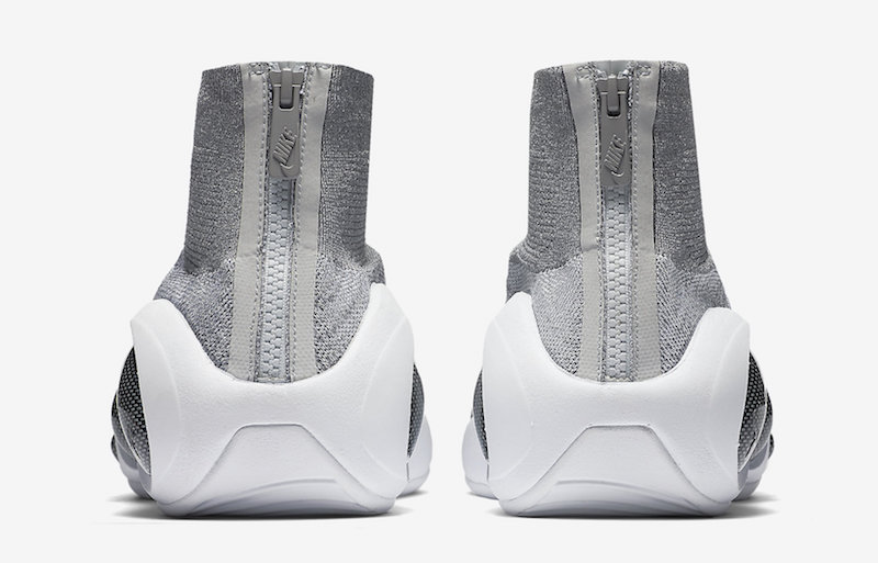 首发的酷灰配色以白色外底托衬,Flyknit 编织高帮袜套设定,无论是鞋面精致的针织纹理,还是后跟的拉链设定,都是时尚和实用的完美结合。