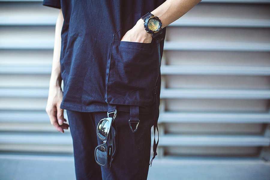 短袖:Chrrota 长飘带机能纯黑口袋T恤