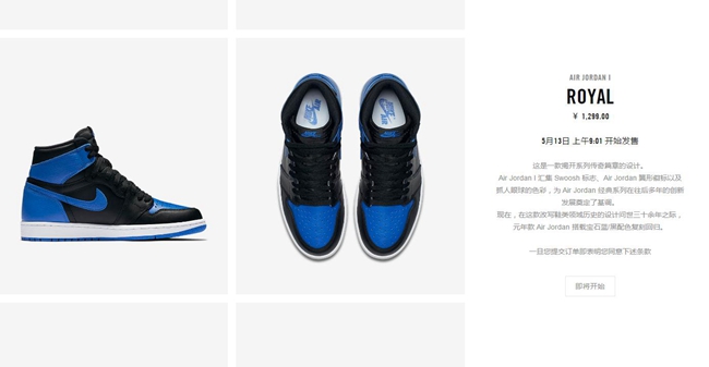 随着 Nike 官方登记系统的不断测试及完善,中国区 Nike.com 官网的新品预告页面也随之更新为与海外相同的 SNKRS 排版设计,无论是美观度还是内容的丰富性均有提升,而确定将于 13 日补货的黑蓝 Air Jordan 1 “Royal” 就显示其中!