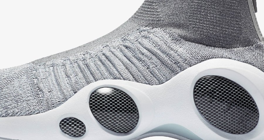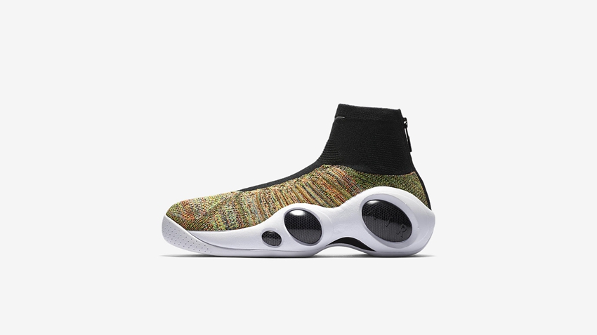这款 Nike Zoom Bonafide 整体采用了高筒鞋领设计,搭配 Flyknit 编织材质打造袜套鞋身。去掉鞋带并在后跟辅以拉链加持,彰显前卫设计的同时,更带来人性化的穿脱体验。