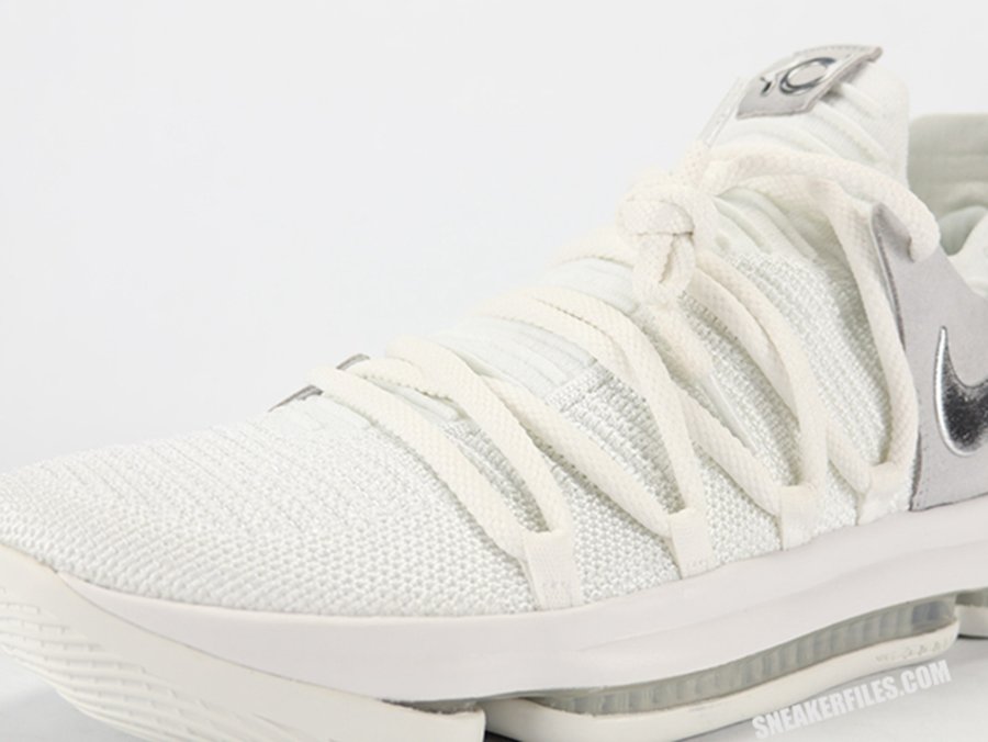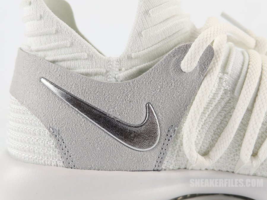 随着杜兰特最新一代签名鞋 KD 10 发售日期的临近,首款白灰配色 “Chrome” 的相关细节也陆续释出!从海外球鞋媒体 sneakerfiles 拍摄的一组实物开箱来看,细节方面相较于前作进行了不小的改变!