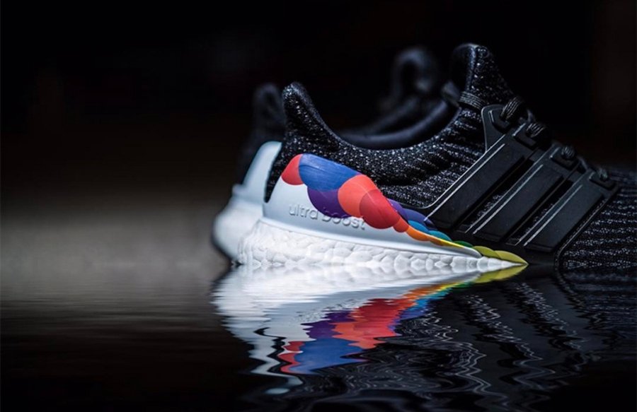 除此之外,adidas 也将以 “LGBT” 为主题推出一款全新 Ultra Boost,采用经典黑白装扮呈现,后跟白色支架处辅以彩虹波点图案彰显主题,在丰富整体层次的同时又带来经典的撞色反差,整体配色效果不俗!