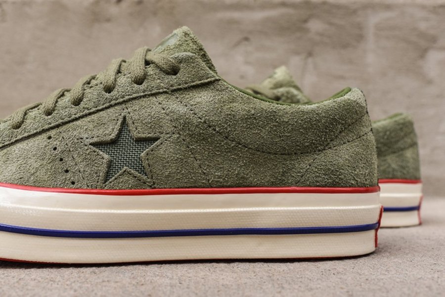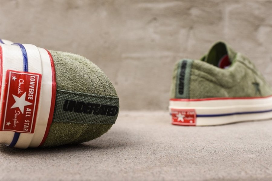 双方本次联名以经典鞋型 One Star ’74 为蓝本,分别以军绿及浅灰配色示人,采用极具质感的麂皮材质打造鞋面,侧面经典的 “五角星” Logo 则以镂空设计进行呈现,鞋舌压印的 Five Strike Logo 彰显联名身份!后跟处的 UNDEFEATED 字样成为鞋身一大亮点,中底采用红蓝色线条稍加修饰,外底与鞋垫均采用大红色进行渲染,颜值可谓极高!