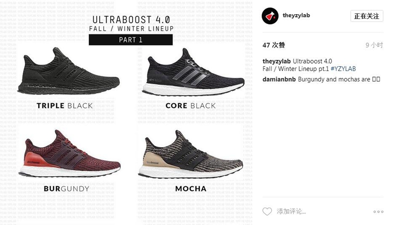 据悉,这四款采用全新鞋面纹理的 Ultra Boost 4.0 将于今年秋冬正式亮相,不知你喜欢哪一双呢?