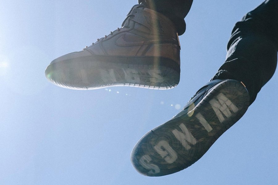 鞋舌皮标与后跟金属铭牌,展示出 MJ 张开双臂的经典造型,内侧部分则嵌入限量 19400 双的专属编码,下方 “Everyone can Fly” 与鞋带语句相呼应!