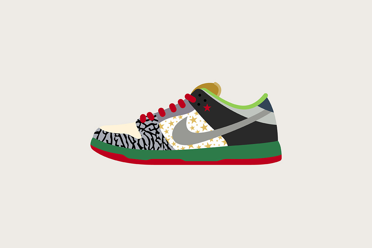 为纪念 Nike 推出的滑板影片 《Nothing But The Truth》 特别打造而成,作为 What the 系列的鼻祖,囊括 35 款风格迥异的 Dunk SB 细节构建而成,不对称的鸳鸯设计带来华丽且丰富的视觉冲击。