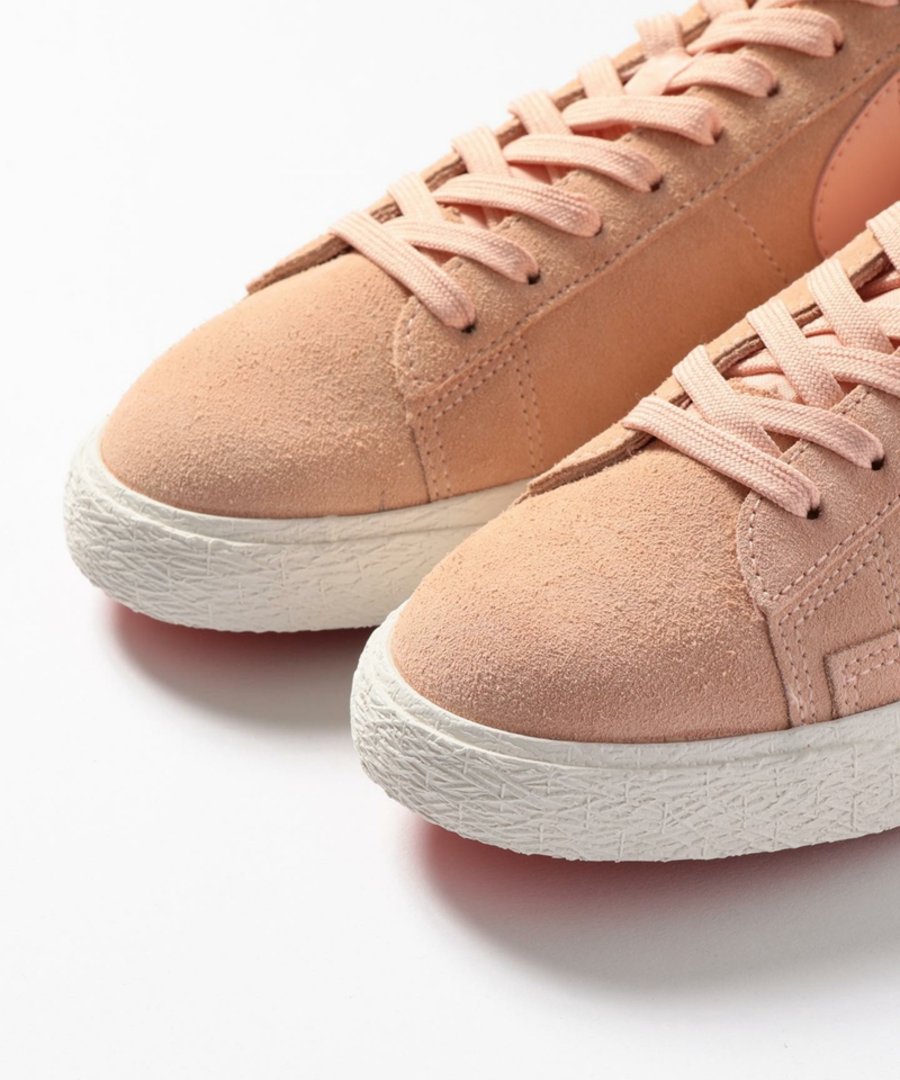 以经典鞋型 Blazer Low 为蓝本,在保持原有造型的同时,采用清新淡雅的粉色装扮示人。辅以极具质感的麂皮材质打造鞋面,外底与鞋垫均采用大红色进行渲染,整体造型既简约又清爽,颜值可谓极高!