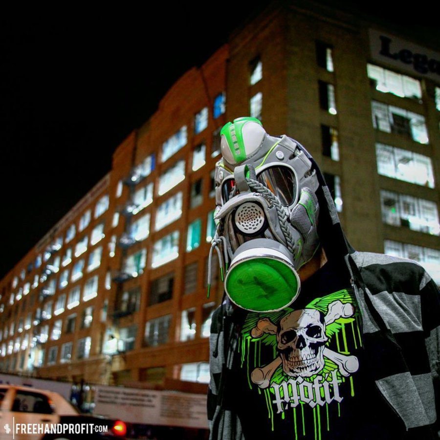 Freehand Profit 本名 Gary Lockwood,主修设计专业,因深受 Hip-pop 及涂鸦文化的影响,偶然参与到艺术家 Noah Scalin 发起的 Skull A Day 艺术企划 (每天都将在个人社交媒体发布来自全世界投稿来的骷髅元素作品),逐渐开启了自己的面具修行!