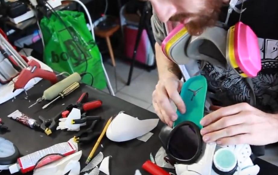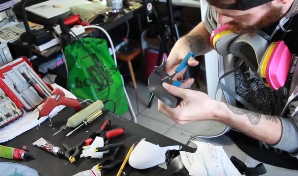 传统胶水、热熔胶枪及热风机有助于将鞋身部件与面具衔接固定,必要时也许还需要拿出针线加固!