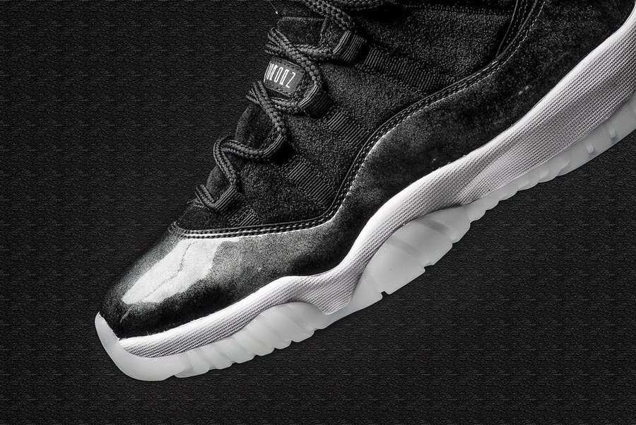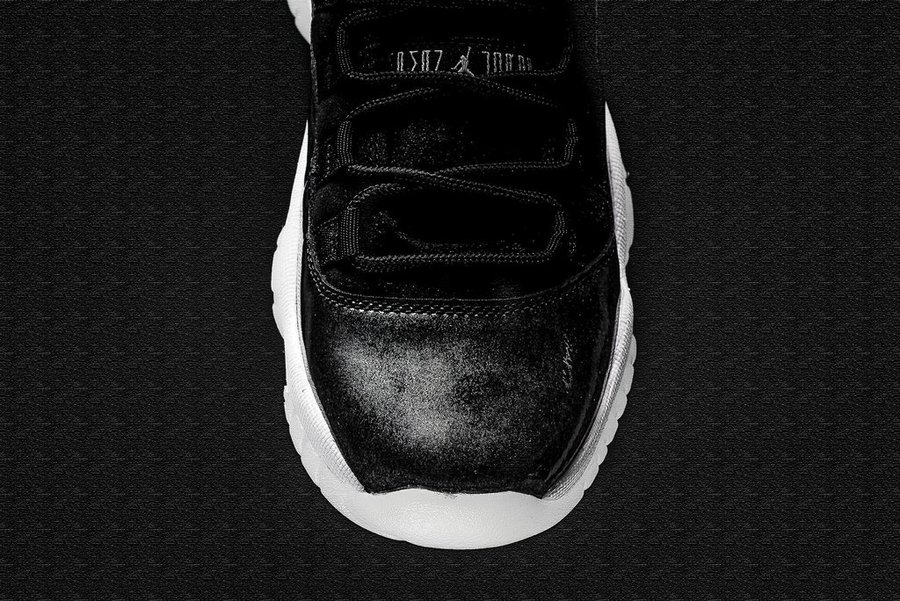 承袭了始于 Air Jordan 11 大魔王的时尚和细腻,同样是皮革材质的全鞋身质感,漆皮则以大理石纹理呈现,光泽和细节表现力都让人着迷!