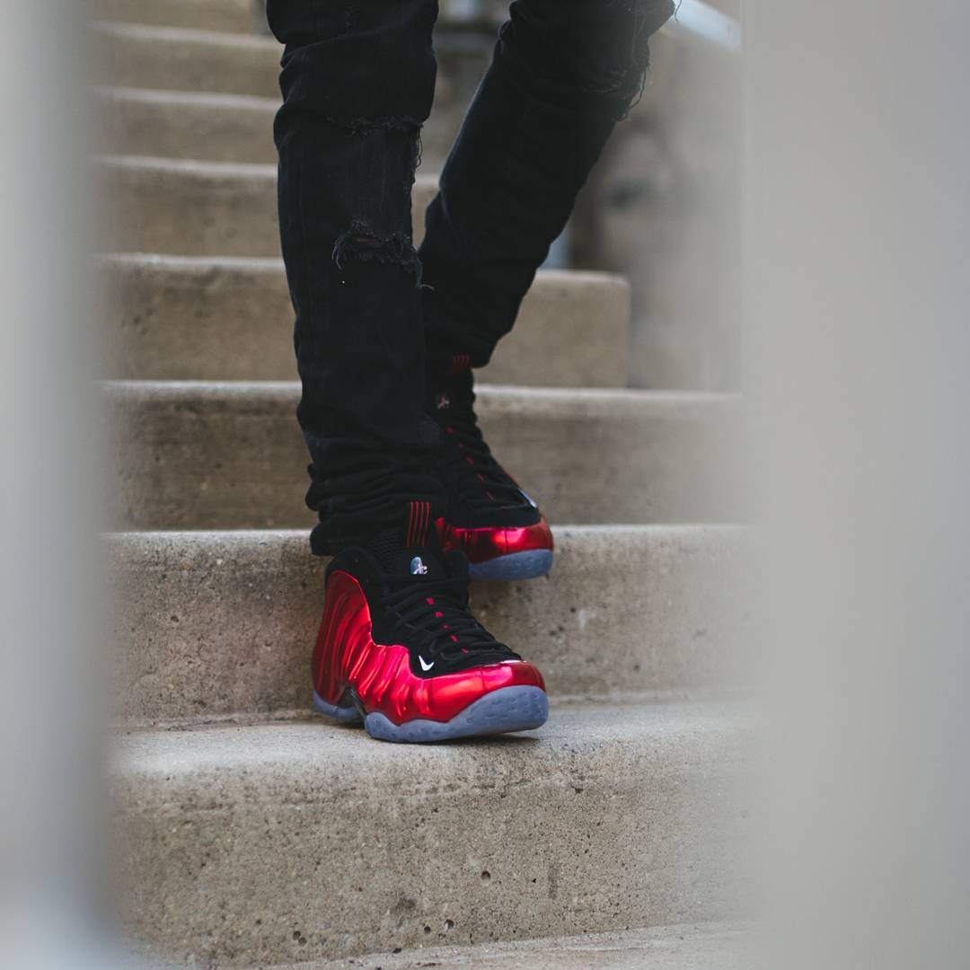 全球多个地区的 Nike Air Foamposite One “Metallic Red” 红喷发售都遭遇了跳票,中国区也没有在 5 月 19 日的第一时间上架。 目前的传言称可能会在 5 月 26 日发售,也就是下周五,尚没有官方的确认。 已经有部分海外店铺发售,让我们通过一组精美绝伦的上脚美图,感受一下这电光红的诱人魅力! 货号:314996-610