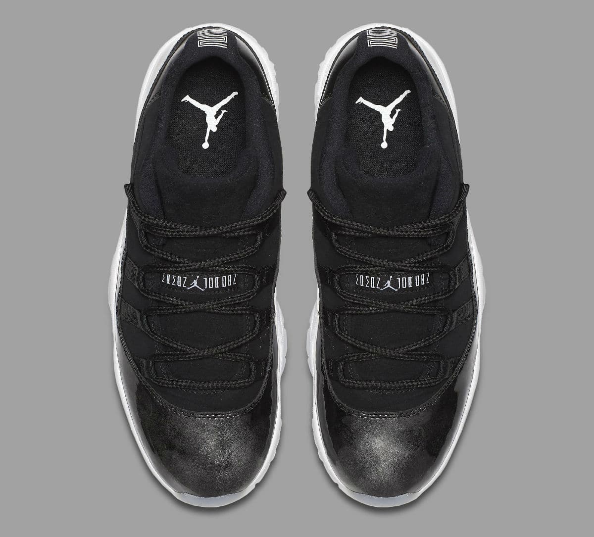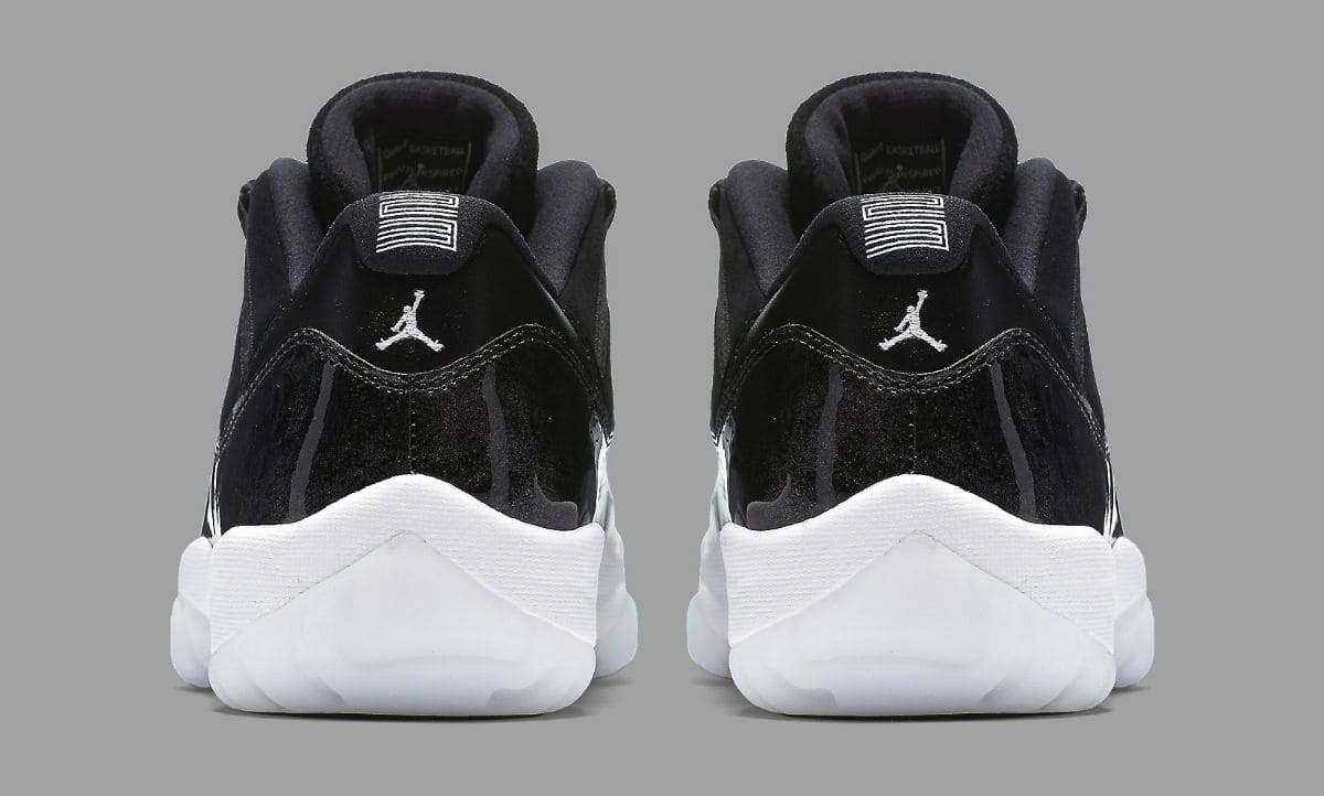 这双 Air Jordan 11 Low “Barons” 在整体视觉效果和细节装扮上,几乎就是大魔王配色的翻版!运用精美的大理石漆皮光泽,鞋领也采用了皮革材质凸显奢华质感。乳白色的外底则同 72-10 配色一样,黑白的整体装扮毫不抢戏,让观众可以充分沉浸于细腻而独特的细节表现中。