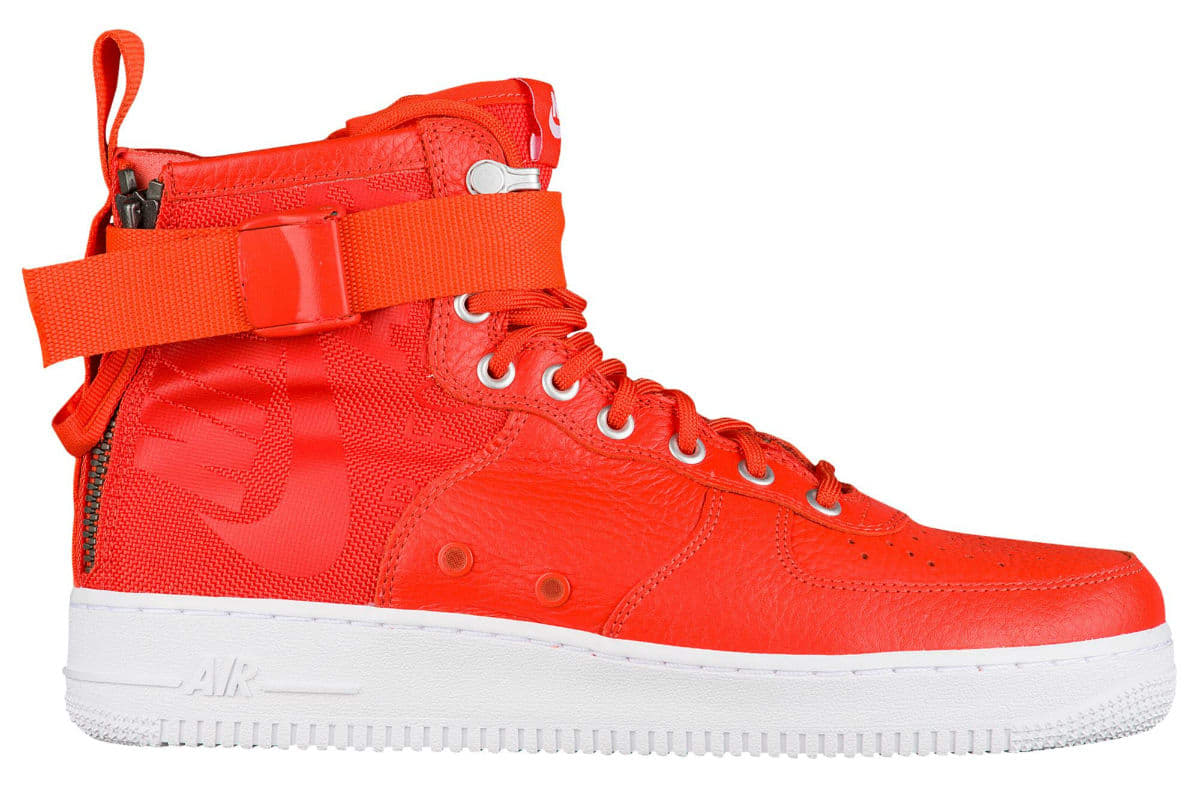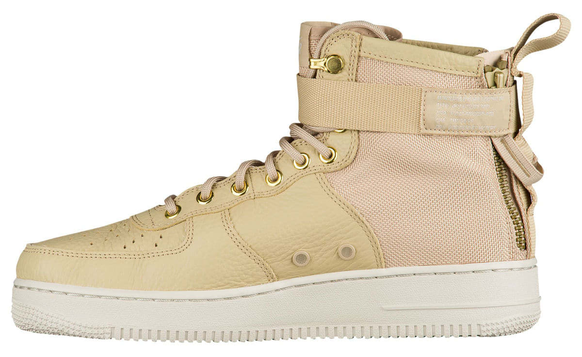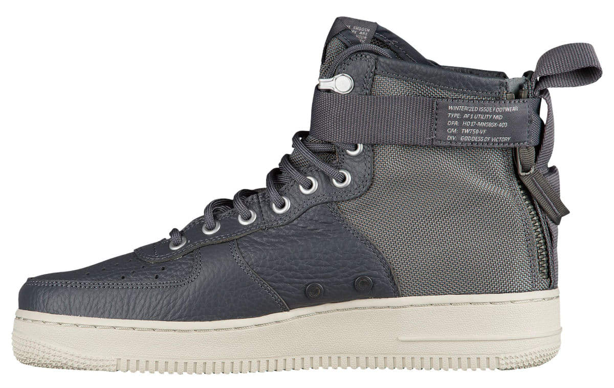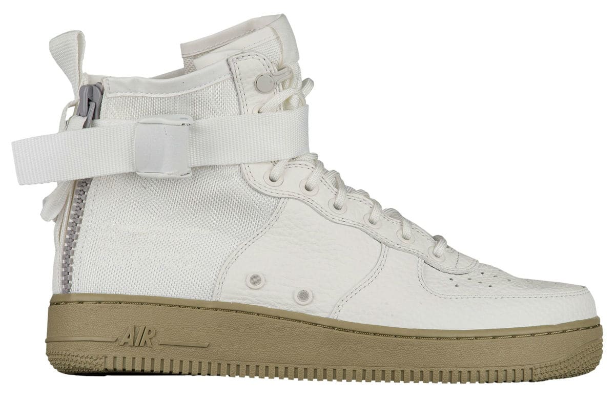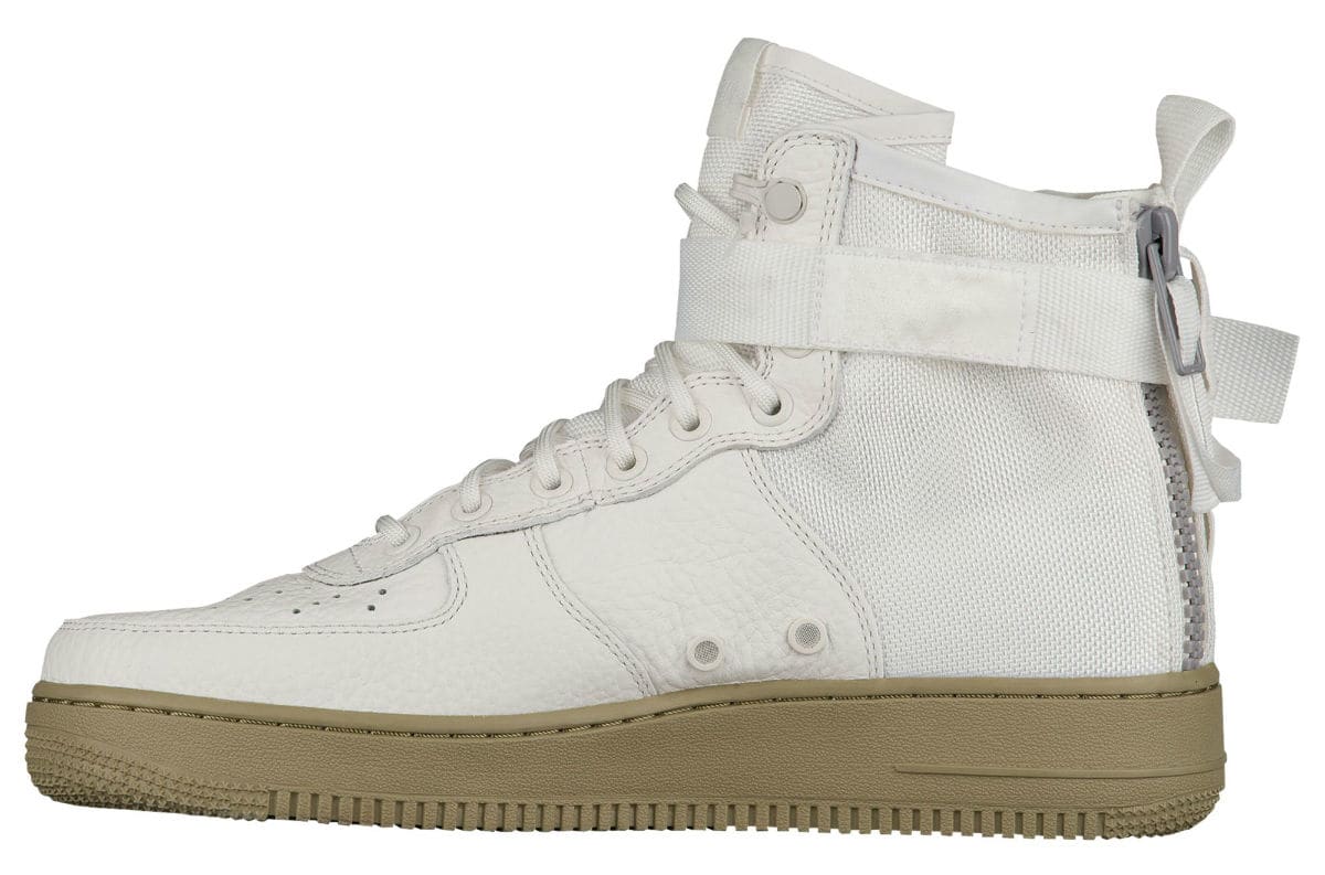 Nike 公司为了应对炎热的夏季,将推出 7 款中帮版的 Special Field Air Force 1。鞋身将延续之前采用抗撕裂尼龙以及皮革材质打造,脚踝处则改为经典的一条绑带,并在鞋帮处印有 Nike AF 1 Logo,后跟的双拉链设计,机能感十足极具特点!