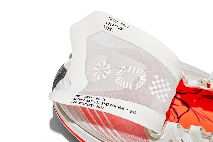 这双 NikeLab Zoom Fly SP 以 Breaking 2 的最早原型为灵感,采用半透明的弹力编织材质制作鞋身,可以展现出里面的红色内衬,即透气又轻便。鞋头流线的线条搭配超大 Swoosh 使整体充满了速度感!鞋舌内侧印有 Swoosh Pinwheel、跑道标志和格纹旗帜,后跟则印有数字时钟图案,鞋垫上的手绘草图更是极为亮眼!