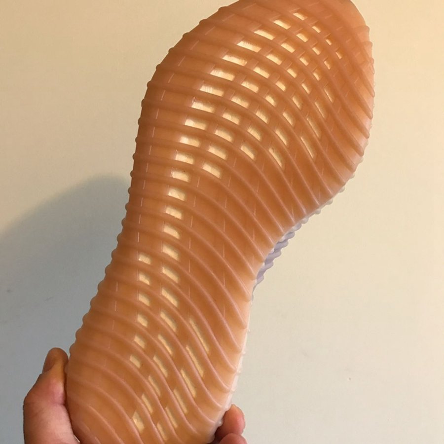 先是上月由 Ins 账号 @s.sam.group 率先披露实物近照,使得我们可以第一次近距离欣赏这个全新鞋型,而鞋内标签的曝光,也证实了眼前这个 Sample 确实名叫 “YEEZY BOOST 650 V1”,货号为 AQ0084!