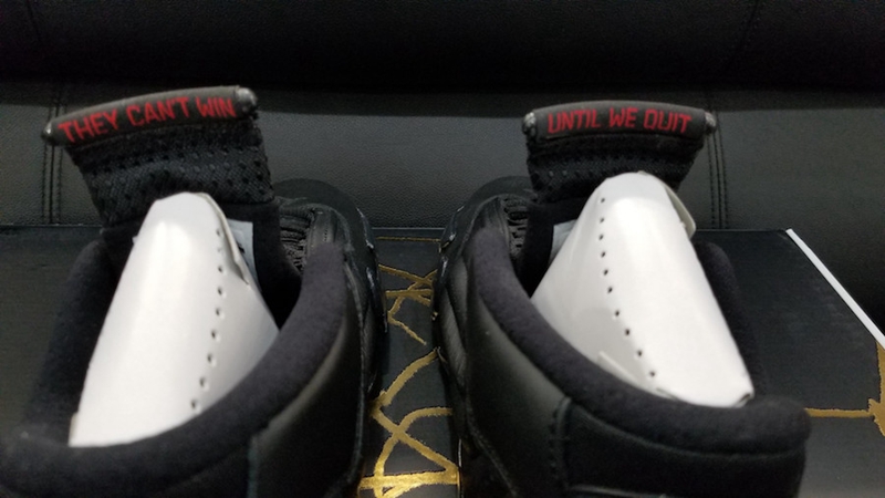 鞋舌内改用两句激励性的短语 “They can't Win” & “Until We Quit” 代替常规鞋标,彰显 Defining Moments 独特的气氛烘托!