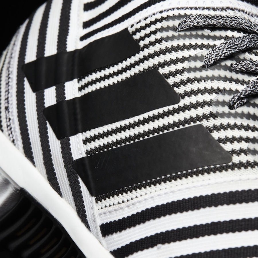 眼前这双 Nemeziz Tango 17.1 鞋身采用弹性及包裹更为出色的 AGILITYKNIT 2.0 物料打造而成,黑白纹理交错的中帮袜套造型,无疑带来视觉上的极大冲击,也与近期响彻街头的斑马主题相得益彰!搭配自带开窗的通风大底,无论是行走的舒适性还是外观的辨识度都极为出彩!