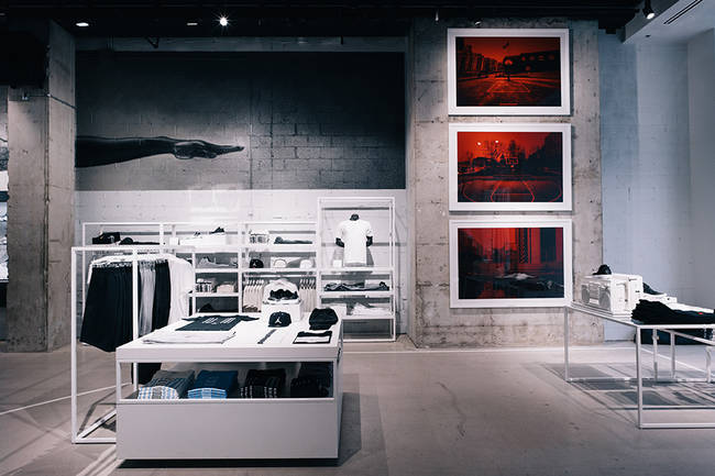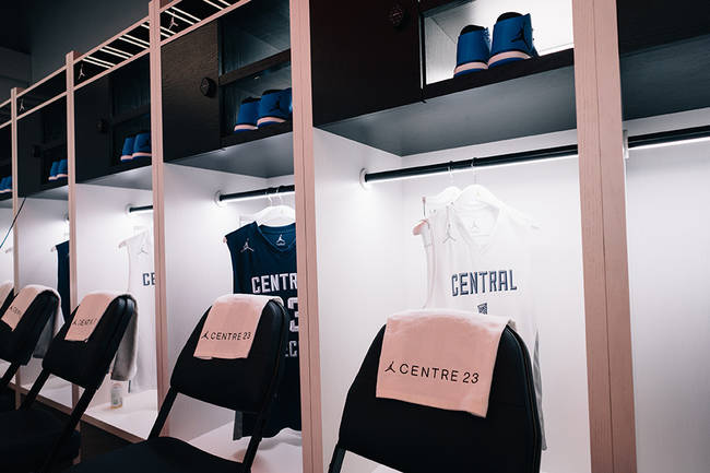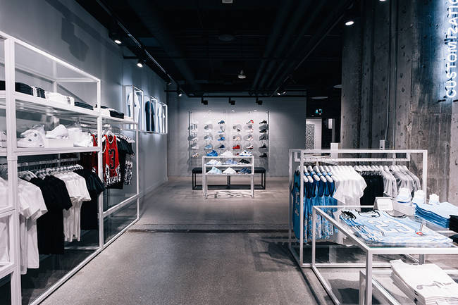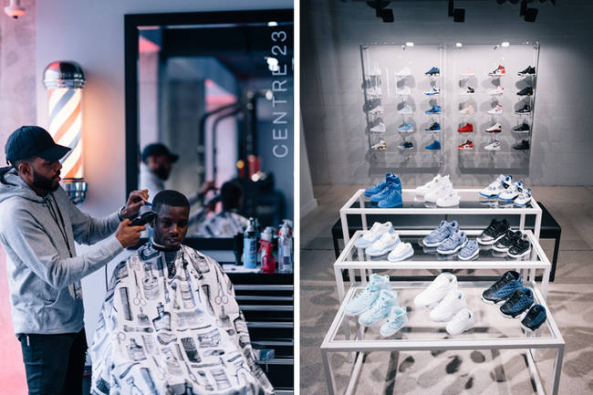 除了常规商品的售卖区域外,这一店铺还包含了 Centre 23 训练场地和理发店,颇具运动时尚的味道。