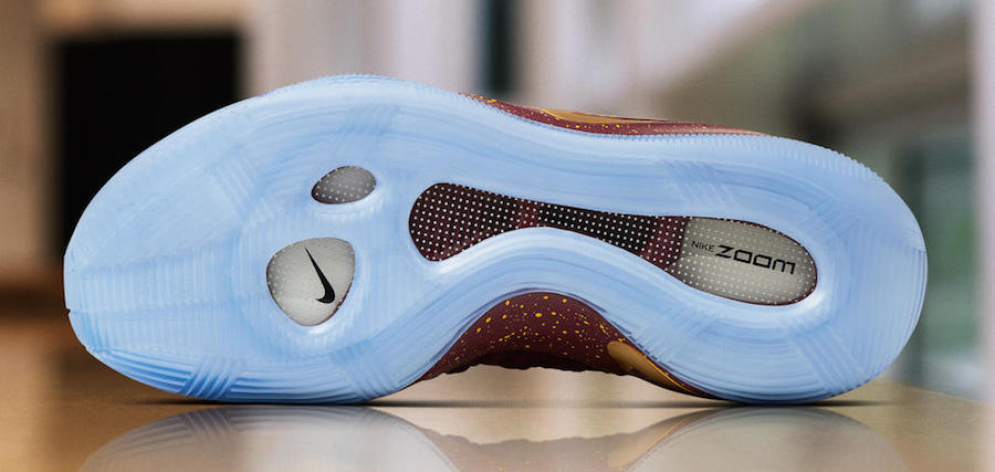 这双 Nike Hyperdunk 2016 以酒红色为主色调,金色泼墨的中底代表着本赛季大大小小的几十次战役,金色 Swoosh 寓意着拿下今年总冠军。鞋舌处 “KL” 字样象征着球鞋主人的身份。最后以前后掌 Zoom Air 与淡蓝色水晶底进行收尾!