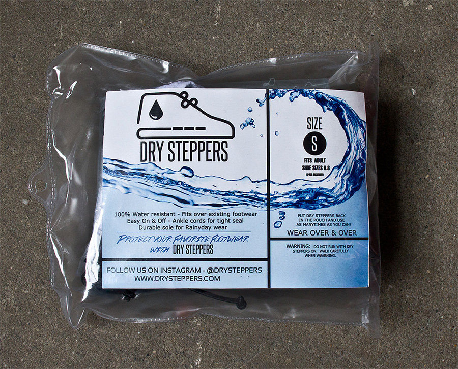 DrySteppers 其实就是一个被做成了球鞋模样的塑料袋!但加入了拉链设计和鞋底防滑设计,在隔绝雨水的同时,还有不错的易用性和防滑性能。