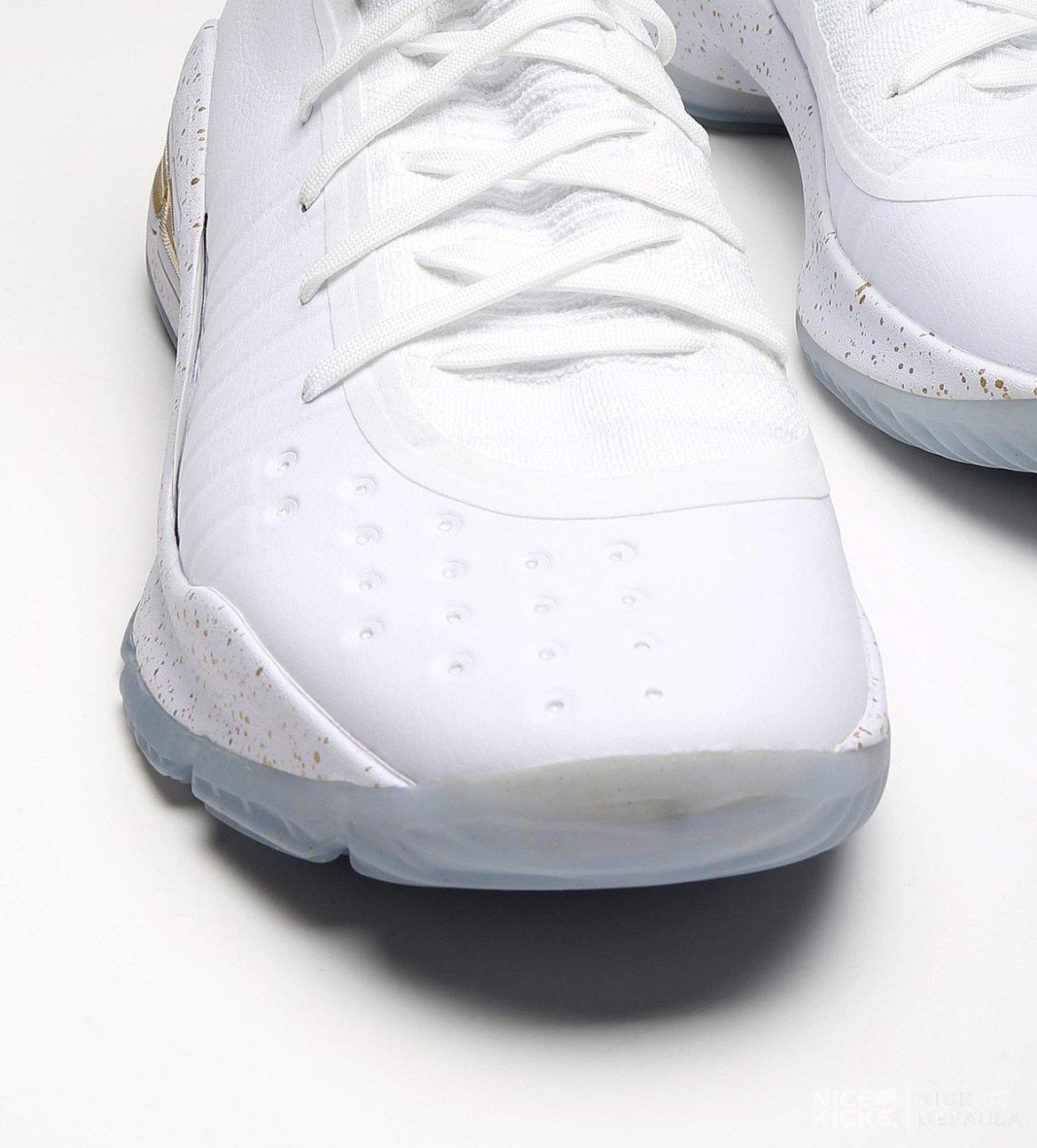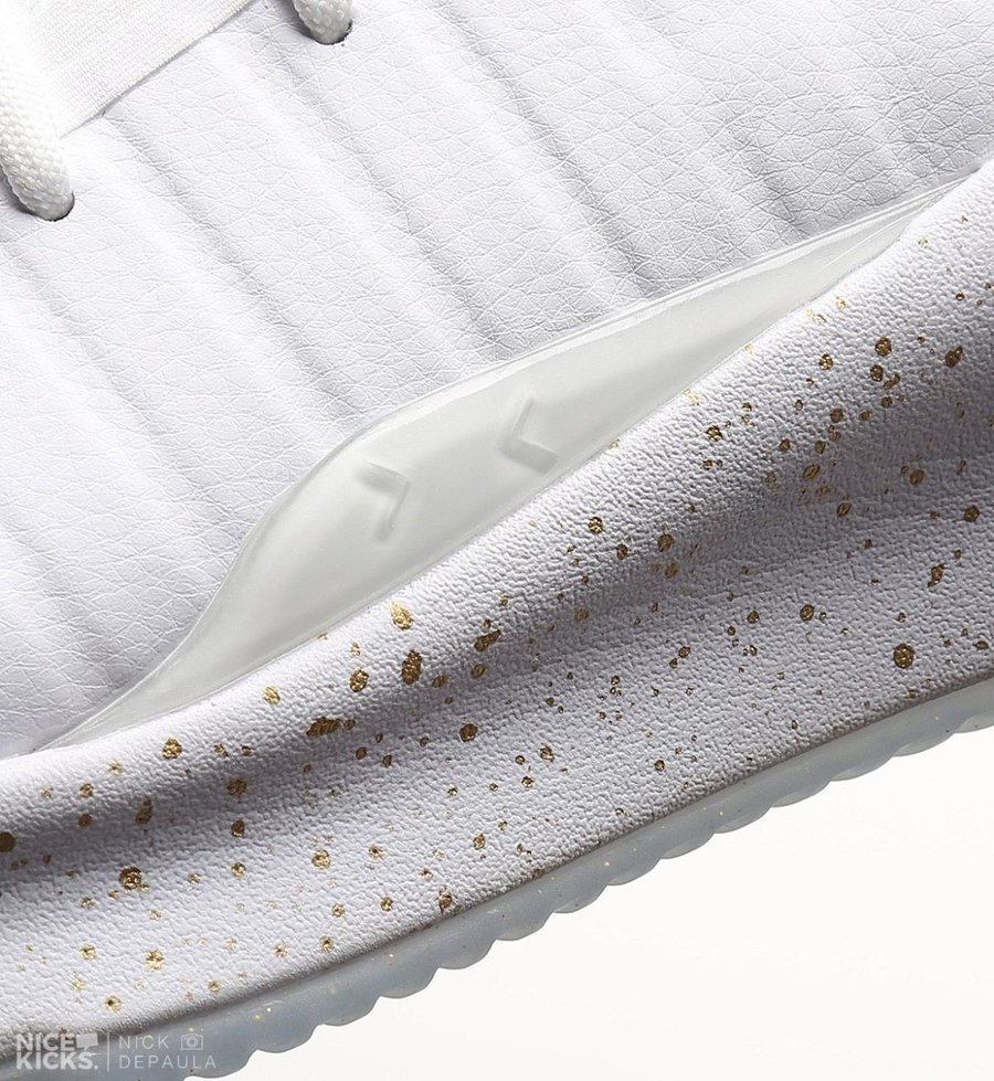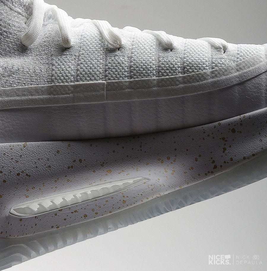 NiceKicks 近期公布了一组 Under Armour Curry 4 的细节照片,鞋身以纯洁的白色为主色调,中底运用了金色泼墨进行渲染,UA Logo 以及 SC Logo 也有金色进行点缀,最后以淡蓝色水晶底进行收尾。此次采用全新的剪裁设计,并融合了全新皮质材料以及袜套编织设计,看起来给人一种轻软舒适的感觉!