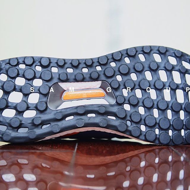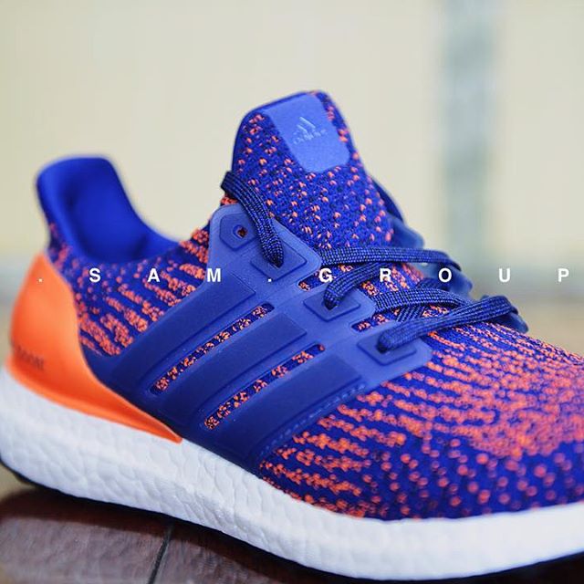 这组图片来源于球鞋摄影师 s.sam.group,鞋身主要采用了蓝色的 Primeknit 编织制成,并搭载了 UB 3.0 橙色的独特纹理,两侧采用蓝色果冻支架,后跟稳定片运用了橙色进行渲染,最后以黑色外底与 Boost 缓震中底进行收尾,整体层次感增强,给人一种特别的视觉感受。